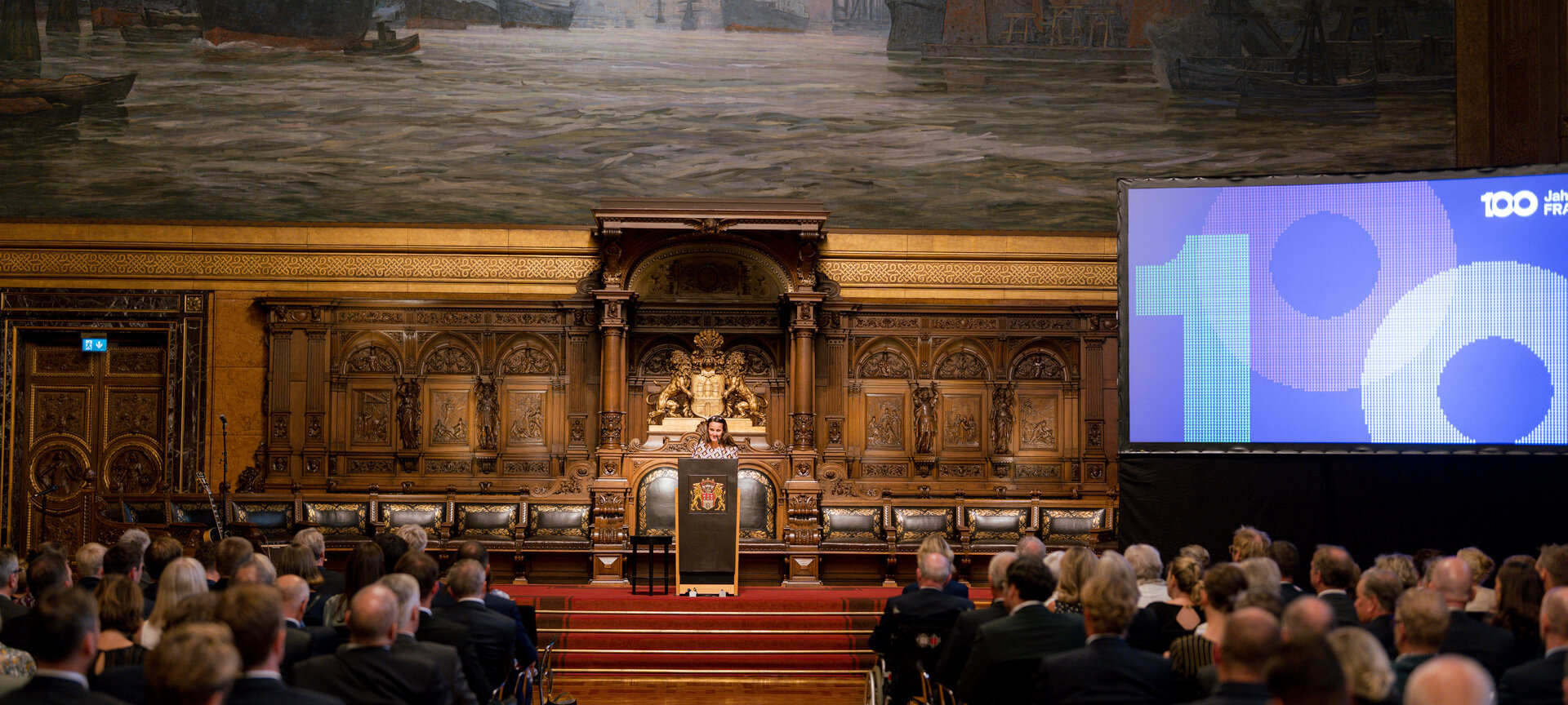 Anlässlich unseres 100-jährigen Bestehens wurden wir am 04. September von der Stadt ins Hamburger Rathaus eingeladen. Für uns war das jedoch mehr als ein offizieller Festakt. Der Abend war eine großartige Chance, um gemeinsam mit rund 300 Kolleg*innen, Partner*innen, Kund*innen, Wegbegleiter*innen und Freund*innen zu feiern, die vergangenen 100 Jahre Revue passieren zu lassen und gemeinsam nach vorne zu schauen.